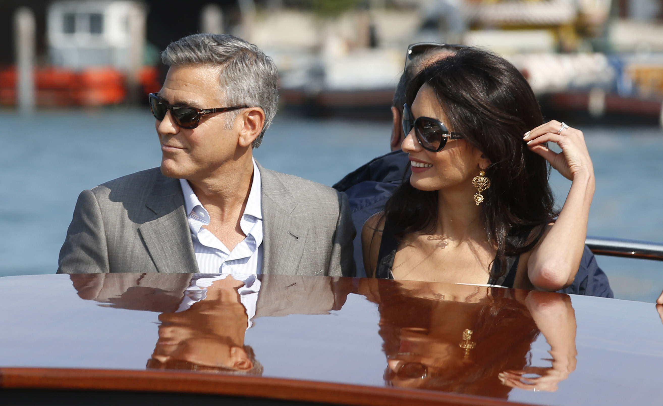 George Clooney and his future bride Amal Alamuddin arrive in Venice, Italy, Friday, Sept. 26, 2014.