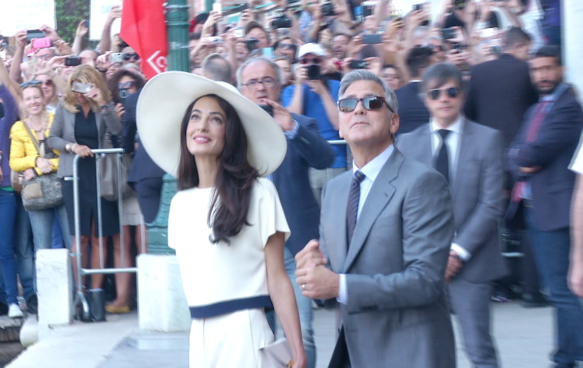 After five days in Venice chasing after George Clooney and his bride Amal Alamuddin, I am finally back in Rome. I had a blast covering this story because it was completely different from most of the work I do for AP Television. Let’s just say that chasing after Clooney in a water taxi in Venice is a little different from covering the Pope, or Berlusconi, or destitute migrants arriving on Italian shores. It was frivolous and fun. Coming home to Rome on the train from Venice with a colleague, we were trying to figure out who is the real Amal Alamuddin. The woman we saw in Venice looked like a beautiful Barbie doll hanging on the arm of a famous Hollywood actor. She had movie star glamour, and was popping in and out of high-fashion outfits every few hours as far as we could tell. She never spoke, she just smiled behind her large sunglasses and flashed her rings. Long legs and big diamonds were on display, not the brains and grit she must have.