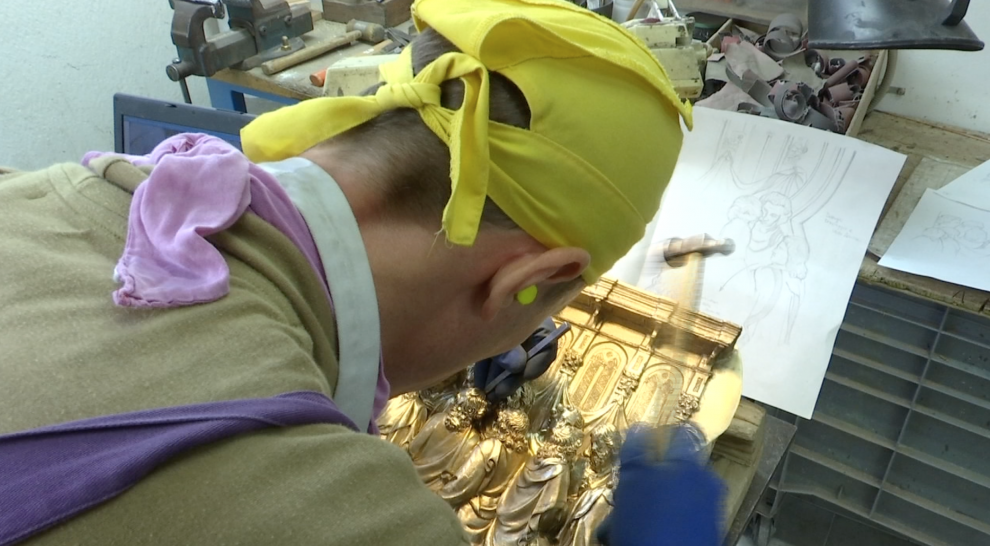 Ciglia said it has been a tough job as they have endeavored to precisely replicate Ghiberti’s work, spending days trying to accurately copy details such as eyes and feet. He said they struggled for weeks over Christ’s belly button in the crucifixion panel noting, “It was complicated trying to capture the expression of the belly button as it was in Ghiberti’s original.”