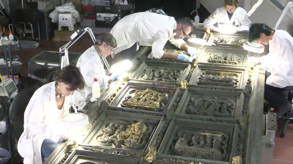 The restoration of the doors has gone hand in hand with the creation of an exact replica of Ghiberti’s original doors, which is nearing completion at a foundry near Florence and will be put on the Florence Baptistery in January.